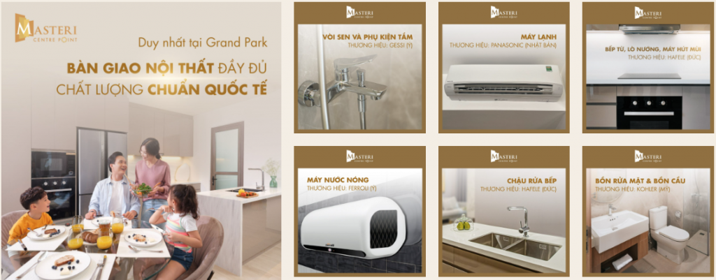 Masteri Centre Point là dự án duy nhất trong Vinhomes Grand Park được bàn giao đầy đủ nội thất theo chuẩn quốc tế đến từ các thương hiệu nổi tiếng của Âu – Mỹ như Hafele, Kohler, Gessi… có thể sử dụng hoặc cho thuê ngay mà không mất chi phí, thời gian và công sức đầu tư nội thất.