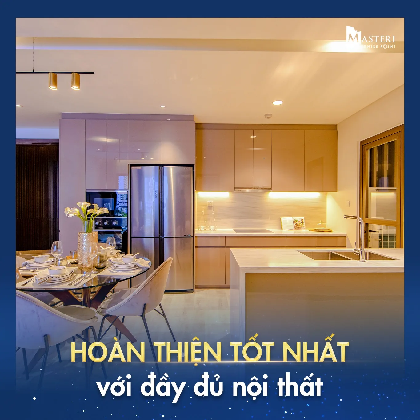 Khách hàng sở hữu căn hộ hạng sang Masteri Centre Point trong giai đoạn này sẽ được chủ đầu tư Masterise Homes bàn giao Full nội thất và các trang thiết bị cao cấp, từ hệ thống thiết bị vệ sinh, tủ bếp trên và dưới, máy điều hòa, quạt hút thông gió,… Những nội thất này đều mang tiêu chuẩn châu Âu, đảm bảo tính sang trọng và hiện đại cho căn hộ.